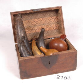 Conjunto de polvorinhos Voltar maio 22, 2025 by blaredo   Anexos 2183.b Metadados Miniatura Compartilhe Número do Objeto2183DenominaçãoConjunto de polvorinhosTítuloConjunto de polvorinhosClasse01 Caça/Guerra | 01 Caça/Guerra > 01.1 Acessorio da armariaGrupoProteção do Viajante > Armas e Imaginário | Proteção do ViajanteMateriaisCabaça | Chifre | Couro > Costurado | Couro | Chifre > entalhe | Metal > Fundição | Madeira | Metal | Madeira > Recortado | Cabaça > RecorteLocalizaçãoGaleria A | Galeria A > Proteção do viajantePeríodoSéculo XIX | Século XXOrigemDesconhecidaDimensões (cm)19,00DescriçãoConjunto de sete polvorinhos, quatro de chifre (2183.1 ao 4), dois de cabaça (2183.5 e 6) e um de couro (2183.7).Artista/CriadorNão EspecificadoInformações de usoO polvorinho é um recipiente para armazenar a pólvora usada na carga das armas de fogo.Marcas e InscriçõesInexistentesForma de AquisiçãoDoação Continuar navegando Pistola com Coldre Pistola de percussão Voltar para a lista de itens