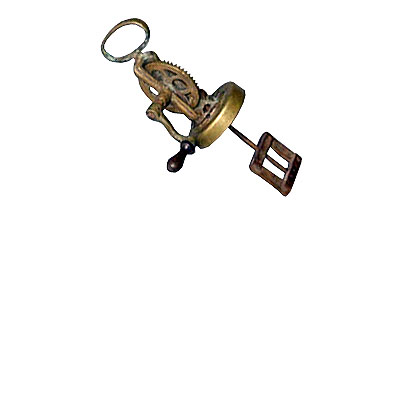 Pequeno batedor manual, de uso doméstico, constituída superiormente por uma haste de recortes curvos, terminada em uma alça elíptica superior e um disco circular inferior com o centro vazado, onde se acopla uma grande roda dentada disposta na vertical, com círculos internos, provida de uma manivela com pega em madeira torneada; essa roda, ao girar da manivela, faz movimentar uma roda dentada menor, disposta na horizontal, que por sua vez faz girar uma fina e comprida haste, de secção cilíndrica, provida inferiormente de uma pá formada por quatro travessas de madeira.