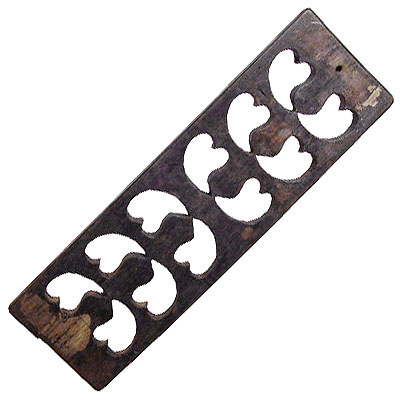 Forma de queijo Voltar fevereiro 27, 2026 by blaredo   Documento 1117 Baixar Metadados Miniatura Compartilhe Número do Objeto1117DenominaçãoForma de QueijoTítuloForma de queijoClasse05 interiores | 05 interiores > 05.6 utensílio de cozinha / mesaGrupoOfícios da Conservação e Transformação dos Alimentos | Ofícios da Conservação e Transformação dos Alimentos > Queijeiro e MantegueiroMateriaisMadeira > Entalhe | Madeira > Envernizada | Madeira | Madeira > RecortadoLocalizaçãoGaleria B | Galeria B > QueijeiroPeríodoSéculo XIX | Século XXOrigemDesconhecidaDimensões (cm)51,00 x 15,80 x 2,00 - Diâmetro (cm): 4,40 - Peso (kg): 650,00DescriçãoForma em madeira escura entalhada, retangular e comprida, com doze cavidades em forma de coração em sua extensão.Marcas e InscriçõesInexistentesArtista/CriadorNão especificadoForma de AquisiçãoDoação Continuar navegando Forma de queijo Forma de queijo Voltar para a lista de itens