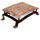 Ralador de mandioca manual. Estrutura em madeira, composta por duas travessas horizontais longitudinais sustentadas por pernas em cavalete, tendo em um dos lados uma grande roda de raios em cruz, com manivela, apoiada em duas hastes verticais; a