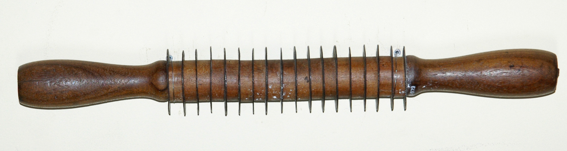 Rolo de cortar massas Voltar fevereiro 24, 2026 by blaredo   Documento 1979 Baixar Metadados Miniatura Compartilhe Número do Objeto1979DenominaçãoRolo de cortar massasTítuloRolo de cortar massasClasse05 interiores | 05 interiores > 05.6 utensílio de cozinha / mesaGrupoOfícios da Conservação e Transformação dos Alimentos > Farinheiro | Ofícios da Conservação e Transformação dos AlimentosMateriaisFerro | Ferro > Fundido | Madeira | Madeira > TorneadoLocalizaçãoGaleria B > Farinheiro | Galeria BPeríodoSéculo XXOrigemDesconhecidaDimensões (cm)5,00 x 6,00 x 40,00DescriçãoRolo de cortar massa, de madeira torneada, com dois punhos para segura; corpo com dezoito discos para cortar a massa.Marcas e InscriçõesInexistentesArtista/CriadorNão especificadoForma de AquisiçãoDoação Continuar navegando Rolo de massas Batedor Voltar para a lista de itens