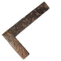 Peça formada por duas hastes, sendo a maior feita de chapa de ferro e a menor de madeira envernizada. As duas partes são unidas na extremidade inferior por três pinos de ferro, fixados com seis pequenas chapas de bronze em formato de losango, que reforçam a junção entre as hastes.