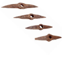 Jogo de quatro picões de tamanhos e robustez diferentes, de formas semelhantes entre si, com duas pontas afinadas e o centro circular vazado por um orifício de secção cilíndrica, ou "olho".