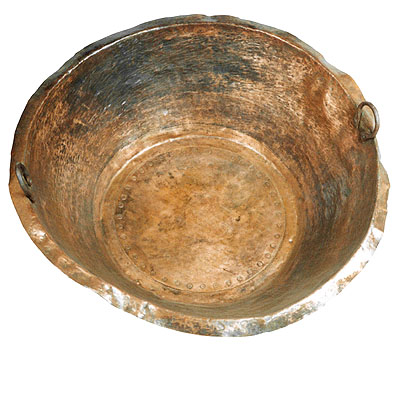 Tacho Voltar fevereiro 20, 2026 by blaredo   Documento 1575 Baixar Metadados Miniatura Compartilhe Número do Objeto1575DenominaçãoTachoTítuloTachoClasse06 Trabalho > 06.1 Equipamento AgrícolaGrupoOfícios da Conservação e da Transformação de AlimentosLocalizaçãoGaleria B | Galeria B > Mestre de AçúcarPeríodoSéculo XIX | Século XXOrigemBrasilDimensões (cm)50,00 (cm) x 128,00 (cm)DescriçãoGrande tacho de cobre em tronco de cone com o fundo plano fixado por arrebites, com duas alças externas em forma de ferradura fixadas internamente junto à borda revirada.Marcas e InscriçõesInexistentes.Artista/CriadorNão especificado.Forma de AquisiçãoDoação Continuar navegando Cocho Debulhadora Voltar para a lista de itens