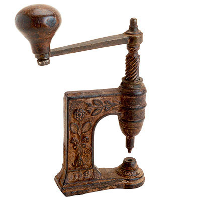 inferior, que quando rebaixado encaixa-se no orifício da base; superiormente, terminado em uma manivela, com uma pega de madeira torneada na extremidade, que faz girar o eixo central; uma mola interna permite a pressão, fazendo com que o eixo volte automaticamente à sua posição original depois de pressionado para baixo