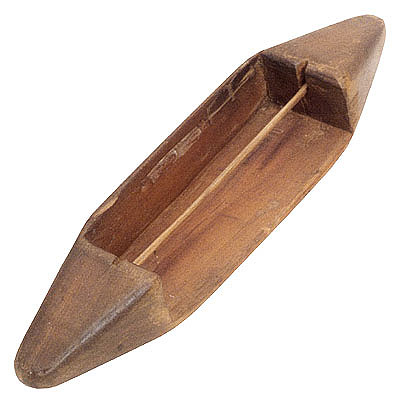 Lançadeira Voltar fevereiro 27, 2026 by blaredo   Documento 0621 Baixar Metadados Miniatura Compartilhe Número do Objeto621DenominaçãoLançadeiraTítuloLançadeiraClasse06 Trabalho | 06 Trabalho > 06.5 Equipamento de fiação/tecelagemGrupoOfícios do Fio e do Tecido > Fiandeira | Ofícios do Fio e do TecidoLocalizaçãoGaleria B > Costureira | Galeria BMateriaisBambu | Bambu > cortado | Madeira > Entalhe | MadeiraPeríodoSéculo XIX | Século XXOrigemDesconhecidaDimensões (cm)4,00 x 5,80 x 28,0DescriçãoObjeto de madeira, em forma de canoa, com o centro escavado, onde se encaixa longitudinalmente uma vareta de bambu, a "canela"; não possui uma das laterais e a outra tem uma fenda aberta ao meio.Artista/CriadorNão especificadoMarcas e InscriçõesInexistentesForma de AquisiçãoDoaçãoReferências BibliográficasLivro: Tecelagem Artesanal - estudo etnográfico em Hidrolândia - Goiás, Marcolina Martins Garcia. Continuar navegando Mesa Lançadeira Voltar para a lista de itens