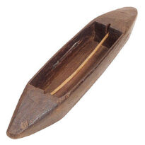 Objeto em madeira, em forma de canoa, com o centro escavado, onde se observam dois pequenos recortes laterais para o encaixe longitudinal da canela; uma das laterais encontra-se mais rebaixada, a outra tem um pequeno orifício circular ao meio.