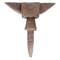 Massa de ferro com centro cúbico de quinas inferiores abatidas; de duas faces opostas partem dois chifres, um de secção cônica e o outro de secção piramidal; base mais estreita, em tronco piramidal com arestas chanfradas, arrematada inferiormente por uma espiga comprida, de secção quadrangular.