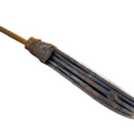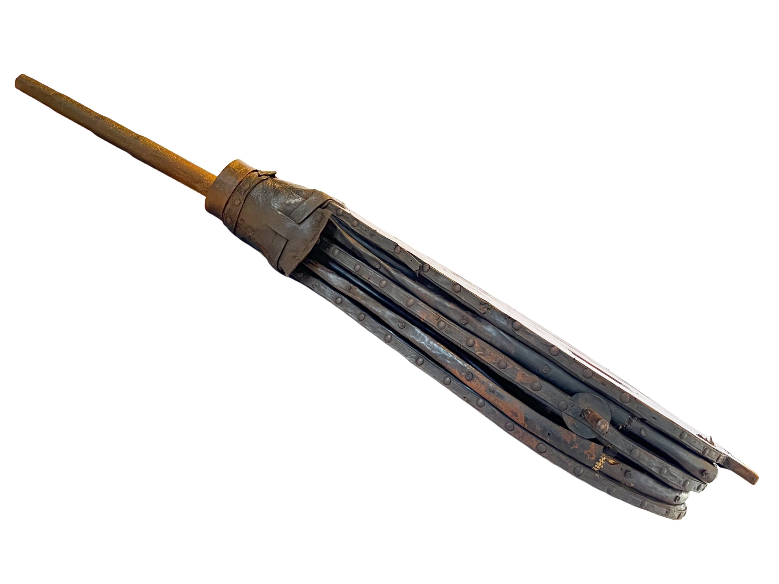 Usado para insuflar ar na fornalha e elevar a temperatura do fogo durante a forja de metais. O operador aciona o fole manualmente (alavanca/haste) comprimindo e expandindo as câmaras; o ar sai concentrado pelo bico para a forja, intensificando a combustão e permitindo aquecer a peça até a temperatura de trabalho.