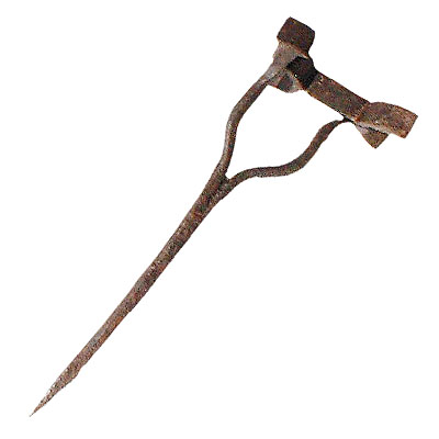 Marcador de gado Voltar abril 27, 2026 by Kelvin Martins   Documento 0331 Baixar Metadados Miniatura Compartilhe Número do Objeto331DenominaçãoMarcador de gadoTítuloMarcador de gadoClasse06 Trabalho | 06 Trabalho > 06.7 Equipamento de PecuáriaGrupoOfícios do Fogo > Ferreiro | Ofícios do FogoMateriaisFerroTénicasForjamento | FundiçãoMarcas e InscriçõesIniciais: "JC".LocalizaçãoGaleria B | Galeria B > MezaninoPeríodoSéculo XIX | Século XVIIIOrigemDesconhecidaDimensões (cm)6,5 x 7,5 x 23DescriçãoFerro de marcar gado com a marca composta pelas iniciais "JC" inscritas na extremidade de uma haste curta e reta, de secção quadrangular e bifurcada à frente; extremidada oposta despontada. Trata-se de um objeto forjado pelo ferreiro.Artista/CriadorNão especificadoForma de AquisiçãoDoação Continuar navegando Candeeiro Marcador de gado Voltar para a lista de itens