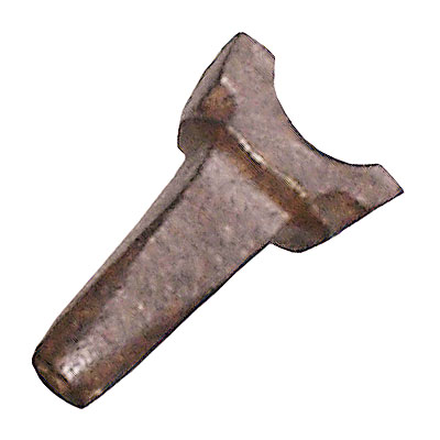 Massa de ferro com porção inferior em espiga quadrangular, de arestas e extremidades arredondadas; porção superior mais larga, de secção quadrangular, com as quinas inferiores chanfradas, e cuja extremidade apresenta superfície rebaixada em concavidade meia-cana.