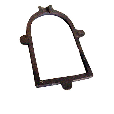 Parte de uma fôrma para fundição, em bronze, encaixável em outra similar, em forma de um aro em meia elipse com corte reto transversal; o extremo em curva é terminado em um ressalto com canaleta meia-cana interna, que forma uma boca cilíndrica quando se junta com a outra parte; as laterais longitudinais e o fundo reto possuem um pequeno ressalto semicircular central, para o encaixe da outra parte; internamente é contornado por um pequeno dente estreito para suporte de um molde que tampa a fôrma.