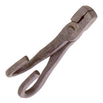 Tenaz de ferro, com duas pernas curtas e grossas; recurvadas em "U" nas extremidade posteriores, unidas por um eixo que permite seu movimento; boca quadrada, com um leve rebaixo nas superfícies interiores, e superfície áspera nas partes não rebaixadas.