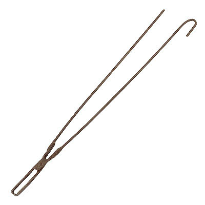 Tenaz longa de ferro, de pernas bem compridas e retas, sendo uma delas em pouco maior terminada em recurvo em "U" para encaixe