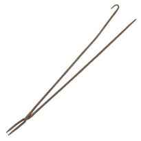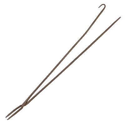 Tenaz longa de ferro, de pernas bem compridas e retas, sendo uma delas um pouco maior, levemente recurvada na extremidade, terminada em recurvo em "U" para encaixe da outra perna, permitindo assim manter a peça fechada; junção no outro extremo através de um pino que permite o movimento de abertura e fechamento; boca torta, estreita, levemente recurvada na extremidade, com recortes semicirculares, facilitando a pega do objeto