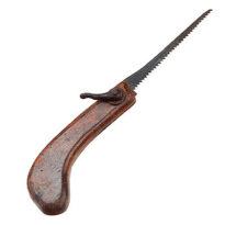 Com lâmina estreita e apontada; cabo recortado em forma de "J"; levemente recurvado para dentro, fixação da lâmina no cabo por uma borboleta e um pino de ferro.