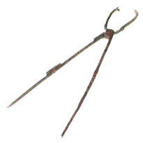 Tenaz de ferro, com duas pernas compridas e retas, unidas por um eixo extremo que permite seu movimento, seguido de uma boca em forma de pinça que permite manusear objetos pequenos; uma das pernas ligeiramente mais comprida que a outra. Pernas com remendos.