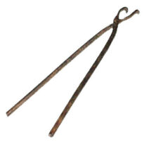Tenaz torta de ferro, com duas pernas compridas e retas, unidas por um eixo extremo que permite seu movimento, seguido de uma boca em duas garras finas recurvadas.