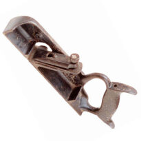 Plaina feita em ferro, em formato de caixa. Um dos lados é mais alto e a parte da frente é arredondada. Na parte de trás, há um punho também em ferro, vazado e arredondado, com recortes curvos para melhor apoio da mão. No centro, encontra-se um suporte inclinado onde fica o ferro cortante e sua capa, que podem ser ajustados por uma tarracha e fixados por um parafuso.