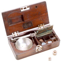 Usada para pesar pequenas quantidades de ouro, prata, pedras preciosas e ligas, fundamental para determinar valor, pureza, realizar compra/venda, calcular impostos ou dividir lotes preciosos. A peça é cuidadosamente montada sobre base nivelada. Pratos pendurados, um recebe a substância a pesar, o outro recebe pesos-padrão até alcançar o perfeito equilíbrio indicado pelo fiel.