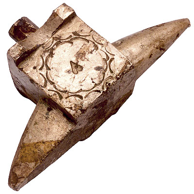 Usada para conformar, apoiar e cinzelar peças de metal em joalheria e outros trabalhos finos em metais macios. O bojo cúbico serve como bloco de apoio plano; os dois chifres opostos, um prismático e outro cônico, funcionam como pequenos mandris para formar curvas internas e externas, afinar pontas ou ajustar anéis e elementos alongados. O pino cilíndrico inferior permite fixar a bigorna num furo da bancada impedindo que se mova sob o impacto do martelo.
