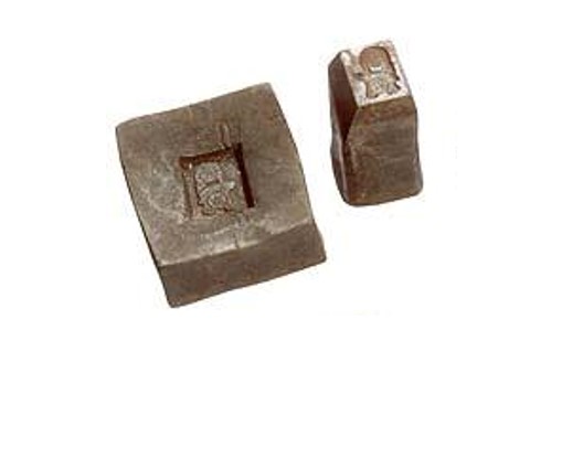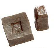 Conjunto formado por uma matriz e um punção em aço. A matriz tem formato paralelepipédico e apresenta, em uma das faces, uma cavidade ligeiramente côncava e rebaixada em forma retangular. No fundo dessa cavidade, encontra-se o desenho em relevo de um pingente decorado com ornamentos florais. O punção, também em aço de secção retangular: a parte superior é mais larga, para receber os golpes do martelo, enquanto a extremidade inferior é mais estreita, encaixando-se exatamente no rebaixo da matriz. Sua superfície traz o negativo do desenho existente no molde.