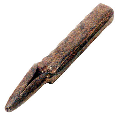 Cortador feito em haste de ferro temperado, com corpo de formato quadrado. A parte de trás é plana. A ponta da frente é achatada e dobrada, afinando até formar um orifício de corte circular. Acima desse orifício há uma cavidade em forma de cone, que serve para a saída do material cortado.