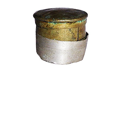 Recipiente em bronze com corpo cilíndrico formado por duas partes que se encaixam, fechado por uma tampa de encaixe de superfície abaulada. Na parte interna inferior há um aro de metal branco soldado, e, na região mediana do bojo, um leve ressalto que corre por toda a circunferência, servindo de apoio para seis peneiras circulares, feitas em chapas planas, cada uma perfurada por vários orifícios redondos com diâmetros diferentes em cada peneira.