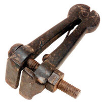 Morsa de ferro formada por duas hastes curtas e arredondadas, unidas por um pequeno pino na base. Na parte superior, cada haste termina em uma boca em forma de garra. Essas bocas se abrem e se fecham por meio de um parafuso com porca sextavada, que passa entre as hastes e atua junto a uma mola de pressão. Uma das hastes possui um pequeno “rabo” na extremidade inferior.