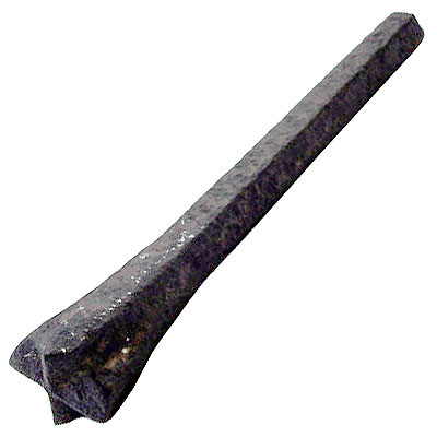 Punção grande, feito de ferro, com haste em forma de hexágono e um pequeno orifício na parte de trás. A ponta é mais larga e possui quatro reentrâncias que, juntas, formam o desenho de uma cruz.