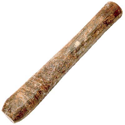Ponteira longa, feita de ferro temperado ou aço, com corpo cilíndrico. A ponta da frente é um pouco mais larga e levemente achatada, terminando em uma superfície com formato de cabaça, plana e lisa.